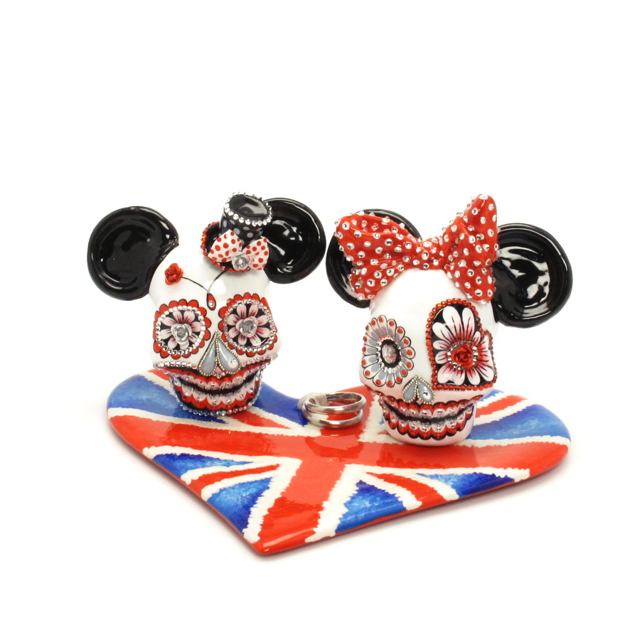 Dia De Los Muerto Skull Wedding Cake Topper doubling as Salt and Pepper Shaker